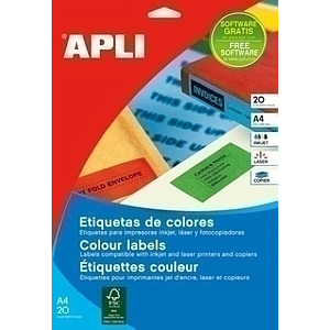 APLI - ETIQUETAS ADH.IMPR. A4 COLOR AMARILLO C.RECTOS BLISTER 20h 210x297 mm 20 uds.(0) (Ref.1599)