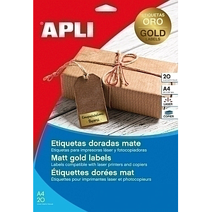 APLI - ETIQUETAS ADH.IMPR. A4 POLYESTER MATE BLISTER 20h ORO 63,5x29,6 mm C.RECTOS 540 uds.() (Ref.14887)