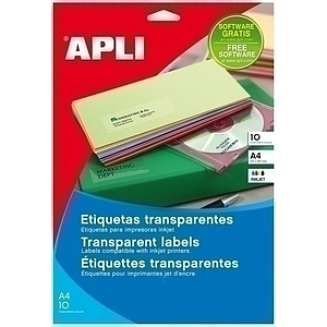 APLI - ETIQUETAS ADH.IMPR. A4 POLYESTER TRANSLUC.MATE LS-CP BLISTER 20h 63,5x38,1 mm C.ROMOS 420 uds.() (Ref.10968)