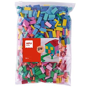 APLI - MINI LADRILLOS GOMA EVA 20X10X5MM BOLSA DE 700 C/SURTIDOS +4 AÑOS (Ref.18749)