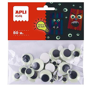 APLI - OJOS MÓVILES GLOW IN THE DARK VARIOS TAMAÑOS SURTIDOS BOLSA DE 50 NEGRO +4 AÑOS (Ref.19368)