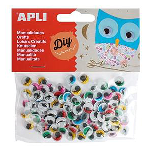 APLI - OJOS MOVILES REDONDOS PESTAÑAS 10 mm. COLORES BOLSA de 100 (Ref.13265)