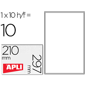 APLI - ETIQUETAS ADHESIVAS TRANSPARENTES POLIESTER PARA IMPRESORA INK-JET 210X297 MM PRESENTADAS EN CARPETAS DE 10 (Ref.10053)