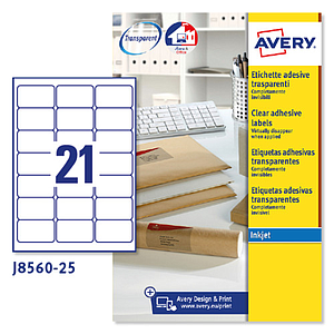 AVERY - PAQUETE 25 HOJAS ETIQUETAS TRANSPARENTES QUICKPEEL-IMPRESORAS DE INYECCIÓN DE TINTA-63,5X38,1 MM (Ref.J8560-25)