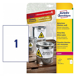 AVERY - PAQUETE 8 HOJAS ETIQUETAS DE POLIÉSTER BLANCO-IMPRESORAS LÁSER-210X297 MM (Ref.L4775-8)