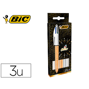 BIC - BOLÍGRAFO SHINE SILVER TINTA 4 COLORES CUERPO BLANCO/SURTIDO METÁLICO CAJA -12U- (Ref.964775)