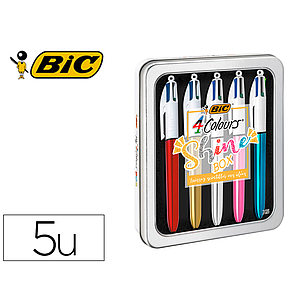 BIC - BOLIGRAFO CUATRO COLORES SHINE BOX CAJA METALICA 5 UNIDADES SURTIDAS (Ref.964755)