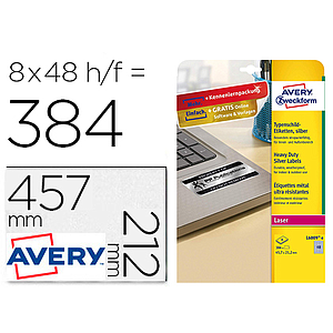 AVERY - Caja 8 hojas con etiquetas 45,7x21,2 mm. plata en poliéster para impresoras laser (Ref.L6009-8)