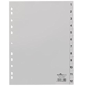 DURABLE - ÍNDICES PP CON PESTAÑAS IMPRESAS DIVISIÓN NUMÉRICA 1-12 VERTICAL A4 GRIS (Ref.6512-10)