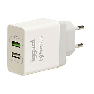 IGGUAL - Cargador 2xUSB carga rápida QC3.0 30W (Ref.IGG317389)