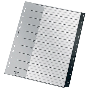 LEITZ - INDICE PP RECYCLE NUMERICO A4+ pestañas 1-10 16 taladros NEGRO (Ref.12080000)