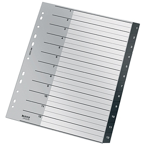LEITZ - INDICE PP RECYCLE NUMERICO A4+ pestañas 1-12 16 taladros NEGRO (Ref.12090000)