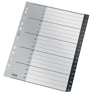 LEITZ - INDICE PP RECYCLE NUMERICO A4+ pestañas 1-20 16 taladros NEGRO (Ref.12110000)