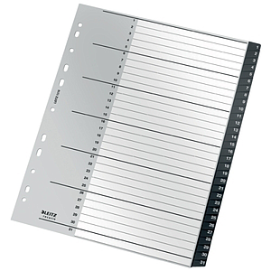 LEITZ - INDICE PP RECYCLE NUMERICO A4+ pestañas 1-31 16 taladros NEGRO (Ref.12180000)