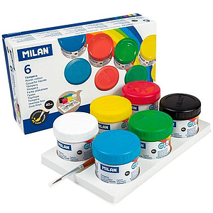 MILAN - TÉMPERA 40ML CON PINCEL COLORES SURTIDOS -CAJA 6 BOTES- (Ref.3206)