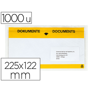Q-CONNECT - Sobre autoadhesivo portadocumentos multilingue 225x122 mm ventana totalmente transparente paquete de 1000 (Ref. KF11296)