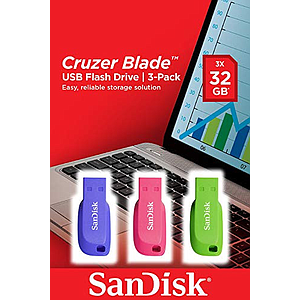 SANDISK - Cruzer Blade 3x 32GB unidad flash USB USB tipo A 2.0 Azul, Verde, Rosa (Canon L.P.I. 0,24€ Incluido) (Ref.SDCZ50C-032G-B46T)