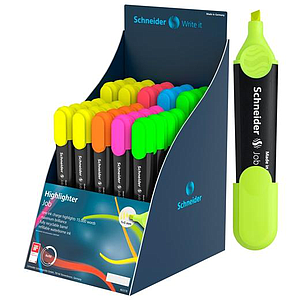 SCHNEIDER - MARCADOR FLUOR JOB SURTIDO EXPOSITOR de 150 (50x amarillo, 30x verde, 30x fucsia, 20x naranja, 10x rojo, 10x azul) (Ref.302481)