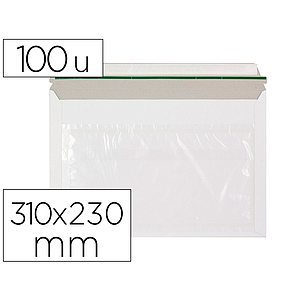Q-CONNECT - Sobre autoadhesivo portadocumentos 310x230 mm ventana transparente paquete de 100 unidades (Ref. KF11301)