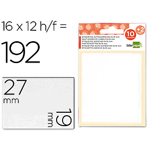 LIDERPAPEL - ETIQUETAS SOBRE DE 10 H. + 2 H. OBSEQUIO 19X27 MM -16 UNIDADES POR HOJA (Ref.ET08)