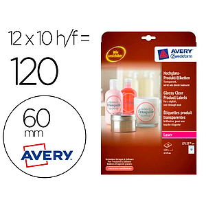 AVERY - Etiqueta adhesiva brillante invisible redonda para impresora laser 60 mm caja de 120 (Ref. L7127-10)