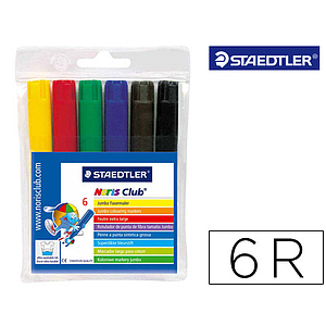 STAEDTLER - ROTULADOR COLOR JUMBO TRAZO 3 MM -ESTUCHE DE 6 COLORES SURTIDOS (Ref.340 WP6)