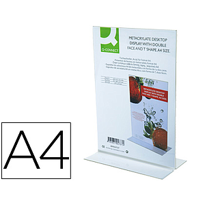 Q-CONNECT - EXPOSITOR SOBREMESA CON FORMA DE T METACRILATO TAMAÑO A4 A DOS CARAS (Ref.KF04174)