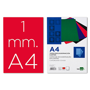 LIDERPAPEL - TAPA ENCUADERNACION Cartón A4 1MM ROJA PAQUETE DE 50 UNIDADES (Ref.TE03)