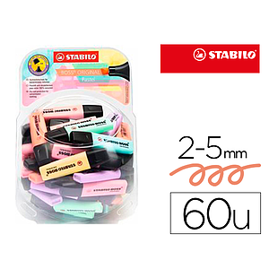 STABILO - Rotulador boss fluorescente 70 pastel expositor bombonera de 60 unidades colores surtidos (Ref. 70/60-03)