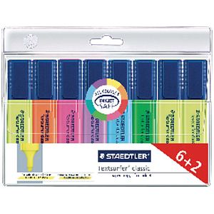 STAEDTLER - Marcador fluorescente Textsurfer Estuche 6+2ud Trazo 1-5mm P Bisel Color surtido (Ref.364AWP8)