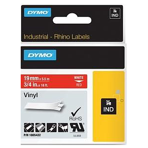 DYMO - CINTA de ROTULAR RHINO ID1 VINILO 5,5m 19mm BLANCO sobre ROJO () (Ref.1805422)
