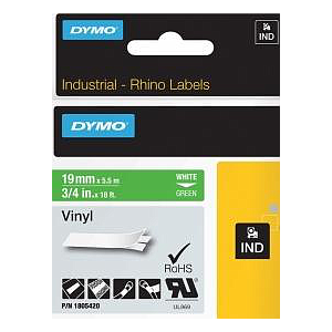 DYMO - CINTA de ROTULAR RHINO ID1 VINILO 5,5m 19mm BLANCO sobre VERDE () (Ref.1805420)