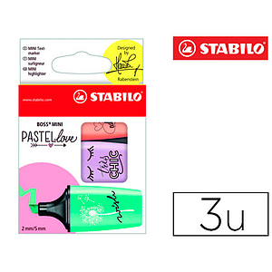 STABILO - ROTULADOR BOSS MINI PASTELLOVE ESTUCHE CON ASA DE 3 UNIDADES BRISA VIOLETA/MELOCOTON (Ref.07/03-47)