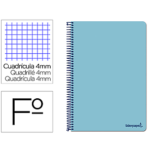 LIDERPAPEL - Cuaderno espiral folio smart tapa blanda 80h 60gr cuadro 4mm con margen color celeste (Ref. BG01)