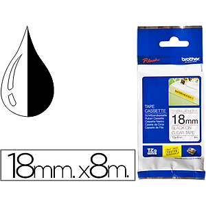 BROTHER - CINTA TRANSPARENTE-NEGRO 18MM LONGITUD 8 MT SUPERADHESIVA (Ref.TZE-S141)