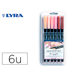 LYRA - Rotulador aqua brush acuarelable doble punta y pincel tonos pastel blister de 6 unidades surtidas (Ref. L6521061)