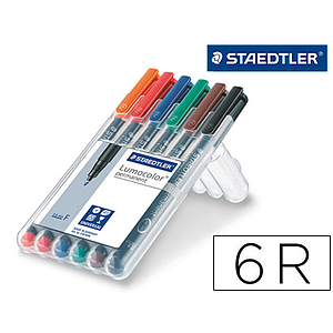 STAEDTLER - ROTULADOR LUMOCOLOR RETROPROYECCION PUNTA DE FIBRA PERMANENTE 318 WP ESTUCHE 6 COLORES PUNTA FINA (Ref.318 WP6)