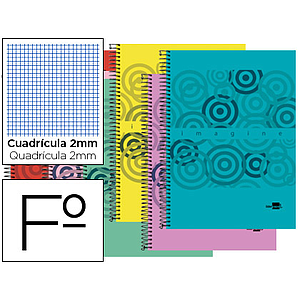 LIDERPAPEL - CUADERNO ESPIRAL FOLIO IMAGINE TAPA PLASTICO 80H 60 GR MILIMETRADO 2MM CON MARGEN COLORES SURTIDOS (Ref.BF30)