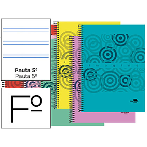 LIDERPAPEL - CUADERNO ESPIRAL FOLIO IMAGINE TAPA PLASTICO 80H 60 GR PAUTA 2,5MM CON MARGEN COLORES SURTIDOS (Ref.BF29)