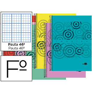 LIDERPAPEL - CUADERNO ESPIRAL FOLIO IMAGINE TAPA PLASTICO 80H 60 GR RAYADO Nº 46 COLORES SURTIDOS (Ref.BF84)