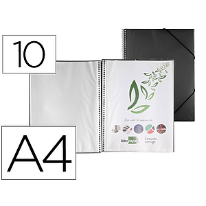 LIDERPAPEL - CARPETA ESCAPARATE CON ESPIRAL 10 FUNDAS POLIPROPILENO DIN A4 NEGRO (Ref.EC29)