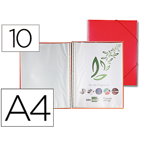 LIDERPAPEL - CARPETA ESCAPARATE CON ESPIRAL 10 FUNDAS POLIPROPILENO DIN A4 ROJO (Ref.EC02)
