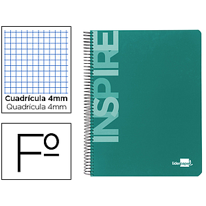 LIDERPAPEL - CUADERNO ESPIRAL FOLIO INSPIRE TAPA DURA 80H 60 GR CUADRO 4MM CON MARGEN VERDE (Ref.BF35)