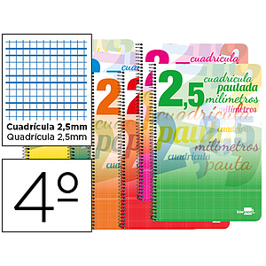 LIDERPAPEL - CUADERNO ESPIRAL CUARTO PAUTAGUIA TAPA BLANDA 40H 80 GR CUADRO PAUTADO 2,5MMCON MARGEN COLORES SURTIDOS (Ref.BC66)