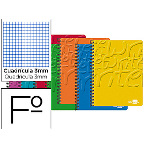 LIDERPAPEL - CUADERNO ESPIRAL FOLIO WRITE TAPA BLANDA 80H 60 GR CUADRO 3MM CON MARGEN COLORES SURTIDOS (Ref.BF06)
