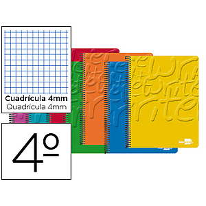 LIDERPAPEL - CUADERNO ESPIRAL CUARTO WRITE TAPA BLANDA 80H 60 GR CUADRO 4MM CONMARGEN COLORES SURTIDOS (Ref.BC01)