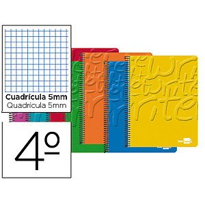 LIDERPAPEL - CUADERNO ESPIRAL CUARTO WRITE TAPA BLANDA 80H 60 GR CUADRO 5MM COLORES SURTIDOS (Ref.BC05)
