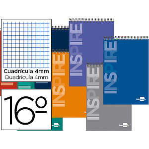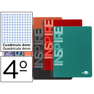 LIDERPAPEL - CUADERNO ESPIRAL CUARTO INSPIRE TAPA DURA 80H 60 GR CUADRO 4MM CONMARGEN COLORES SURTIDOS (Ref.BC51)