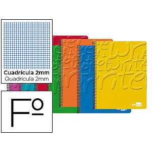 LIDERPAPEL - CUADERNO ESPIRAL FOLIO WRITE TAPA BLANDA 80H 60 GR MILIMETRADO 2MMCOLORES SURTIDOS (Ref.BF04)