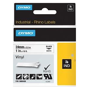 DYMO - RHINO CINTA DE ETIQUETAS INDUSTRIAL ADHESIVA ID1-24, DE 12MM X 5,5M, BLANCO SOBRE NEGRO, VINILO (Ref.1805430)